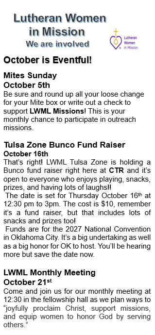 The Lutheran Women’s Missionary League (LWML) is the official women’s auxiliary of The Lutheran church—Missouri Synod.